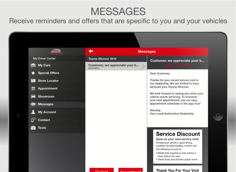 • Receive notifications when your car is ‘In Service’ and ‘Ready for Pickup’*