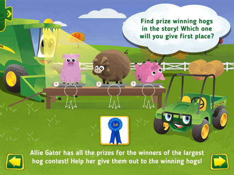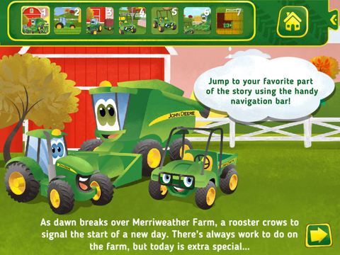 - Tap on Johnny Tractor and his friends to progress the story; there’s interactive JOHN DEERE action and voices on each page!