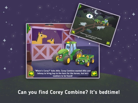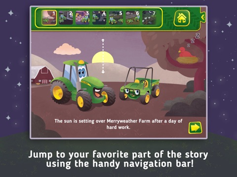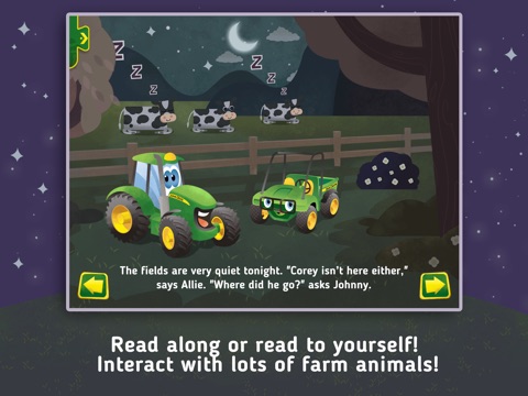 - Tap on Johnny Tractor and his friends to progress the story; there’s interactive JOHN DEERE action and voices on each page!