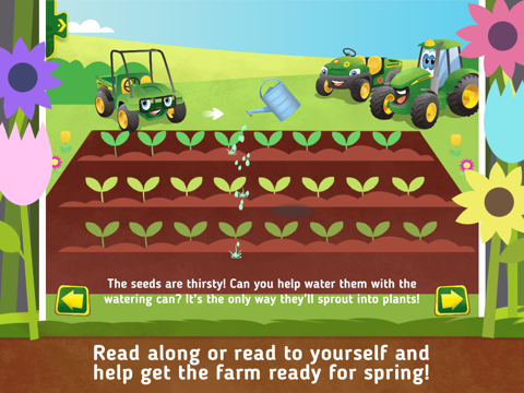 - Tap on Johnny Tractor and his friends to progress the story; there’s interactive JOHN DEERE action and voices on each page!