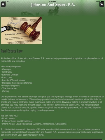 With this app it is easy now to keep your legal representation with you at all times. In a legal jam? Features such as 1 touch dialing allow you quick and easy access to your attorney at any time. Also with the addition of Promoblast and Proxiblast, this app will send you legal tips and tricks that might help when your attorney isnt around.