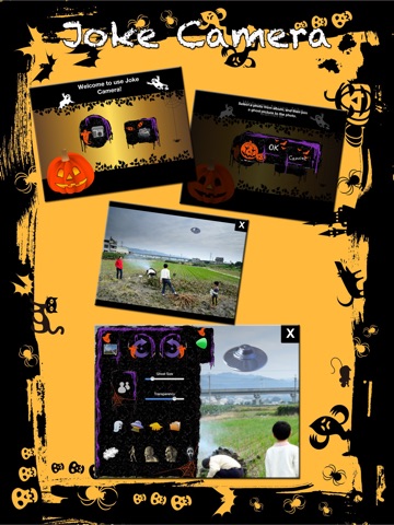 This program has built-in a wide variety of ghosts, monsters, UFO, dinosaurs and other patterns, you can use camera to take a photo, or select a photo from album, and then select a ghost or monster image from gallery to past on it.
