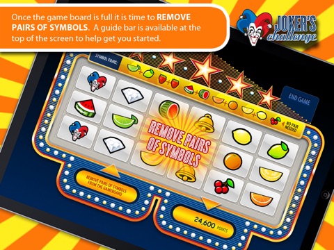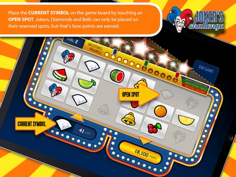 The objective of this game is simple: Score as many points as you can before the game ends! Your game starts with a stack of 52 symbols including Jokers, Diamonds, Bells and various types of fruit. You draw symbols from a stack of symbols and place them on a casino-inspired game board grid. You will draw the symbols in a random order like drawing cards from a deck.