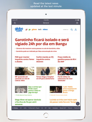Mais desejaria pagar para retirar o anúncio do rodapé. Sugestão: Ao entrar num veículo de comunicação, desejaria que abrisse em tela cheia. Facilitaria quem não pode comprar um celular com tela Plus.