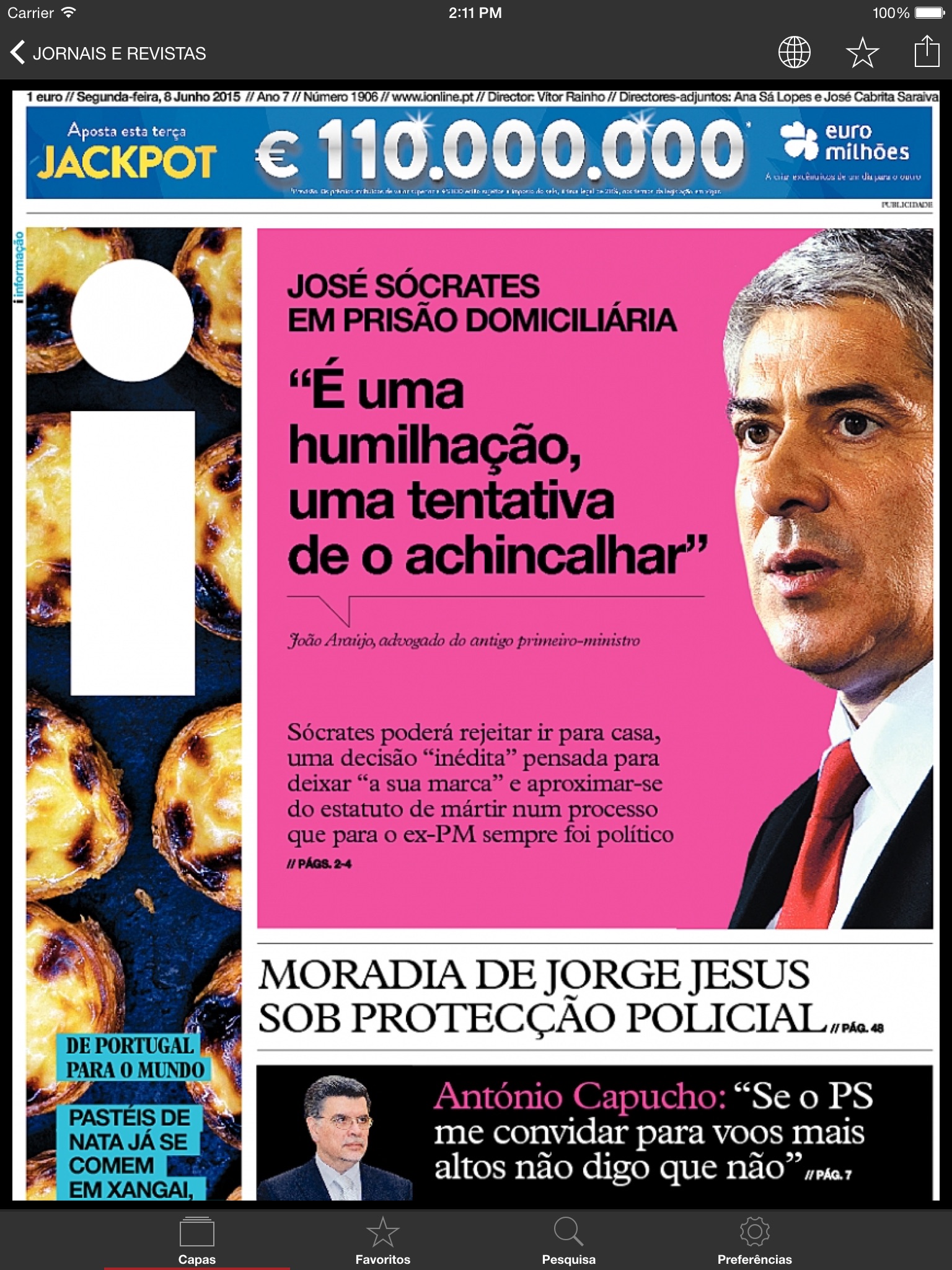Na aplicação Jornais e Revistas poderá consultar diariamente as capas de toda a imprensa nacional.