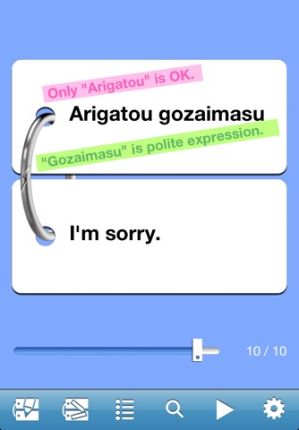 It also has the following functions. Automatic flipping, searching word, reordering cards, skipping cards with slider, importing and exporting text files.