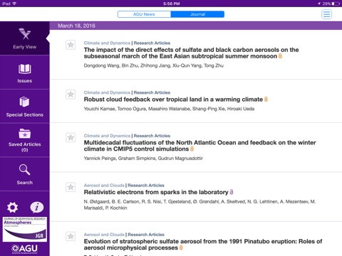Leading journals from the American Geophysical Society are now available on your iPad and iPhone. Fresh from the newsstand, Journal of Geophysical Research: Atmospheres brings you a stimulating, high-impact mixture of articles covering all aspects of atmospheric science.