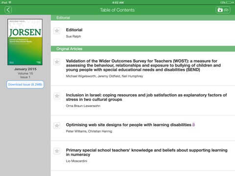 CURRENT SUBSCRIBERS to Journal of Research in Special Educational Needs can “pair” their device with their personal or institutional subscription to enjoy full access in this iPad edition.