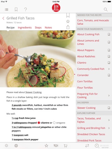 The app contains all the resources cooks need, in the how to department. It is indeed a boon to cooks, both novice and professional alike. What Canadian joy users may not appreciate is that the recipes require weighing of baking ingredients. To save time, you may want to close the app and open your paper version of Joy Of Cooking. It would have been a slamdunk, but something tells me that this was made as one app for the world market. Were used to weighing baked ingredients for European recipes, and in truth, it isnt any more or less difficult. However, when the paper edition of joy is handy in my kitchen, the temptation is too great to go back to the old ways. If you like or prefer weighing your baking ingredients, then I would highly recommend this app for you.