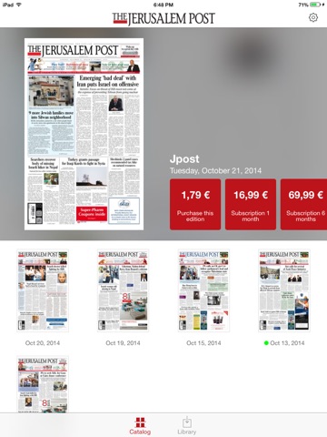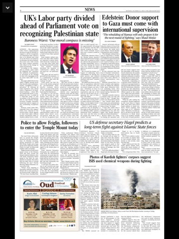 Get actual daily edition of Jerusalem Post delivered daily. The app works flawlessly enlarging easily to read articles. The actual paper appears on your iPad or iPhone. You then easily expand print/articles to read them. Its that easy. Then just flip through the pages to read the paper...as easy to read as the paper edition.