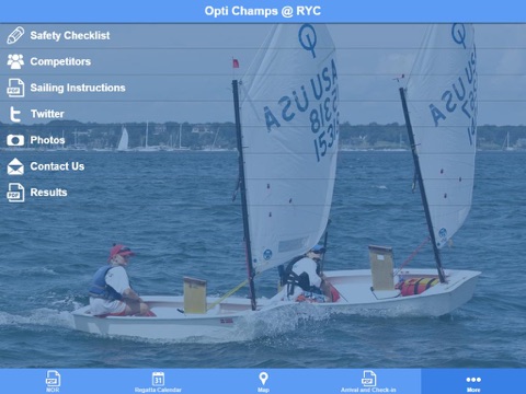 NOR, Regatta Calendar, Map, Arrival and Check-in, Safety Checklist, Competitors, Sailing Instructions, Twitter, Photos, Contact Us, Results