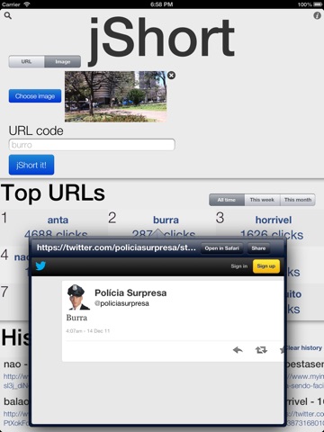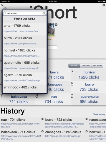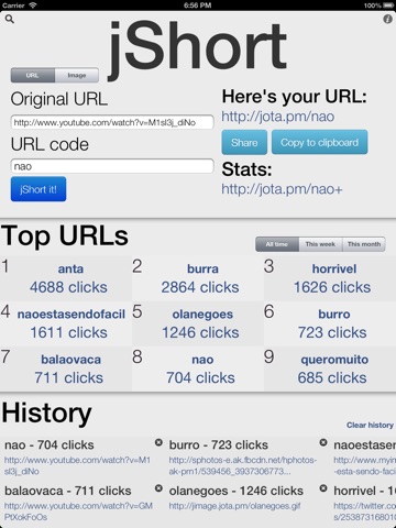 From the app you can also see all URLs you shortened and the top 10, which is updated in realtime!
