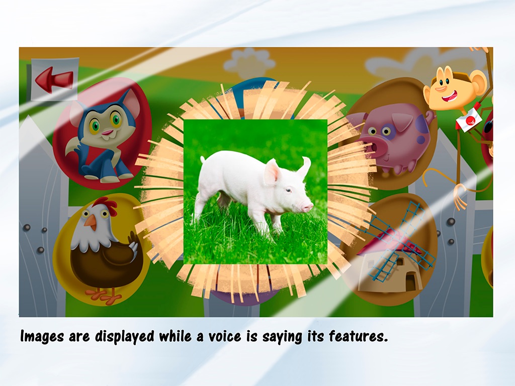 Its real. Touching one of the 16 colorful characters (the theme of your choice) the "real" image of the character appears, and a voice will say interesting facts, and ... in the language of your choice!