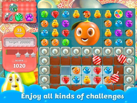 Match three and more sweet fruits in a row, pick up exotic ingredients, clear blocked cells and score points until you completely run out of moves… or time!