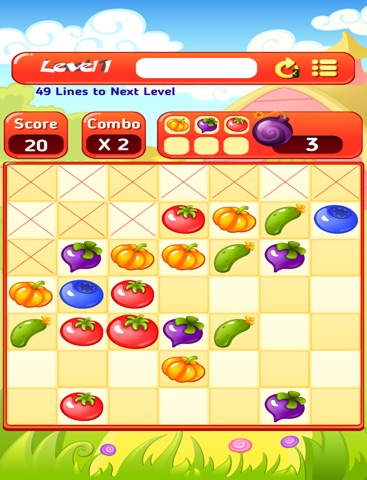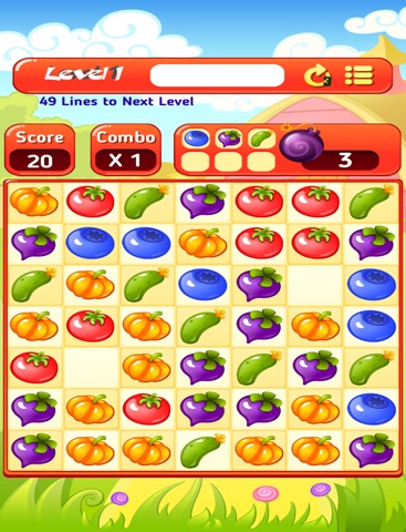 -game play is really easy match 4 to 7 veggies of the same color in all direction(vertical, horizontal oblique )