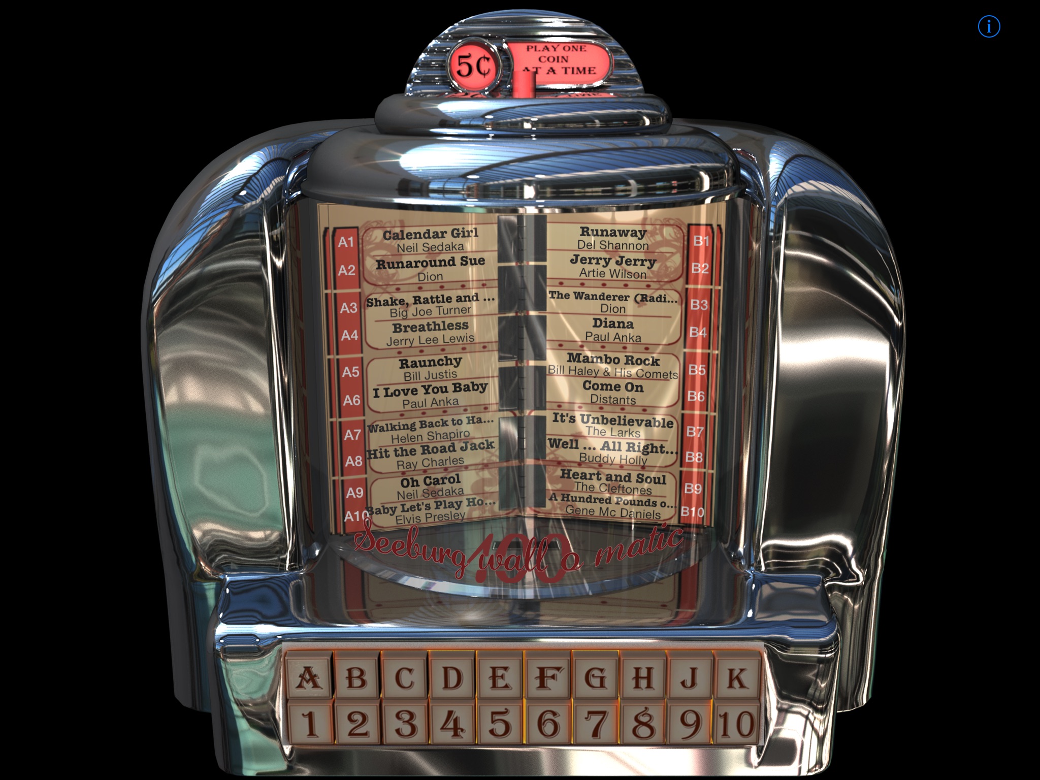 A 3D photorealistic classic jukebox meticulously modeled after the iconic SeeBurg Wall Box Jukebox. Jukebox-3D is an authentic reproduction and functions exactly like Jukeboxes of long ago. Everything from the actual coin drop and internal sounds to the mirror chrome finish really captures the nostalgia of yesteryear in stunning detail. Jukebox-3D is the perfect blend of nostalgia with the latest technology. Use it as a regular jukebox in its classic form or swipe up on the screen revealing a modern user interface with even more access to your music collection.