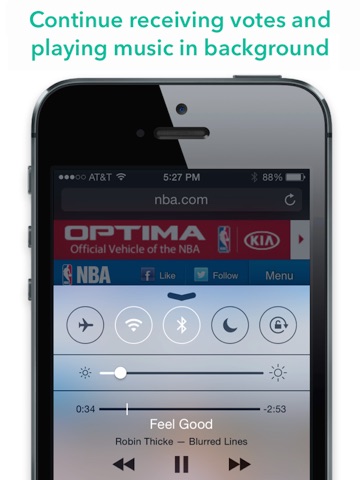 Need to check a text message or browse Facebook while playing Jukebox Air? No problem! The music will continue playing and we will continue getting updates from your voters in the background for as long as music is playing from your phone. Pausing or stopping you music while in the background will stop your vote queue from getting updated.