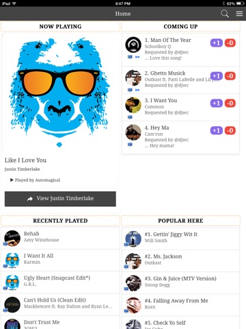 -Vote on songs in the request cue to help play music people want to hear