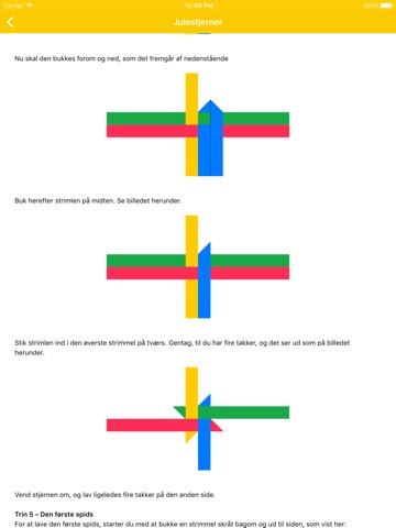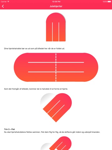 Appen indeholder detaljerede guides til at lave mange forskellige former for julepynt - blandt andet julehjerter, julestjerner og hyggelige julekurve.