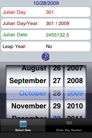 On the main screen, simply use the date picker to select your date. With every selected date, you will see the Julian Day, the Julian Date and also if the year is a leap year or not!