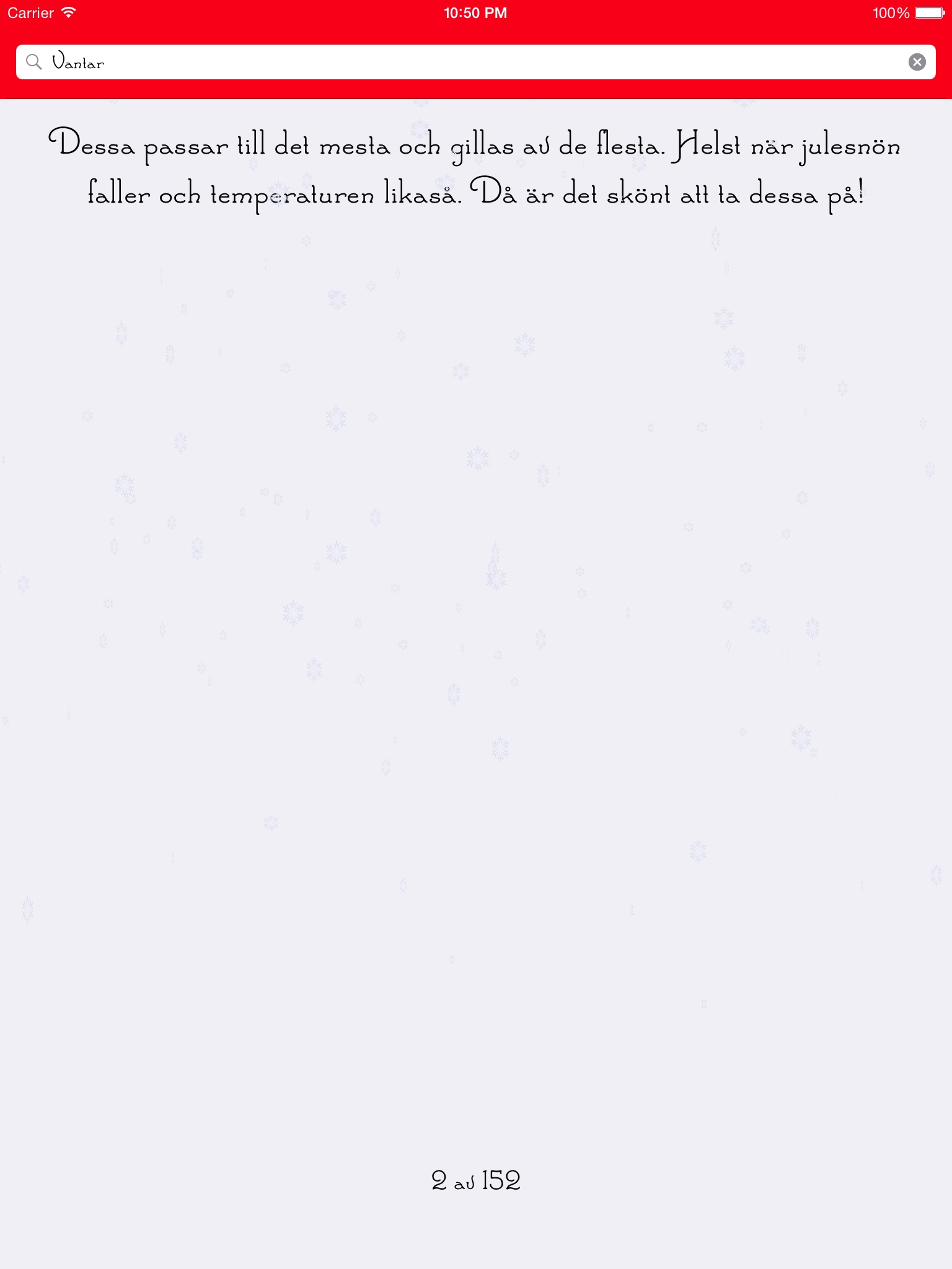 Kommer du inte på rim till julklapparna? Då är julrim appen för dig. Sök efter presenten och få upp mängder av förslag på rim. Denna appen kommer garanterat göra ditt julfirande mycket roligare.