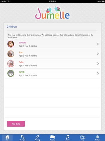 Easily keep track of which baby or twin, triplet or quadruplet baby ate when, how much, how long. Also tracks multiples sleeping and dirty/wet diapers habits. Jumelle Twin and Baby Tracker has multiple features for tracking one baby to 10 babies: Keep notes on each babys teething, fevers, milestones reached. Night light allows for easy night time recording of babies habits and export feature ensures information is shared with multiples grandparents, child care centres, out of town parent, babies physician. Loaded with multiple hints, tips, suggestions, solutions! Dont struggle in a sleep-deprived fog to remember which baby, twin, triplet or quadruplet did what. The Jumelle Twin and Baby Tracker App keeps it all under control for you.