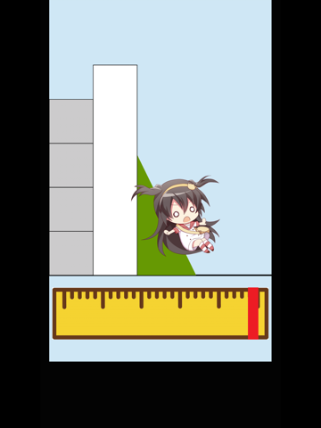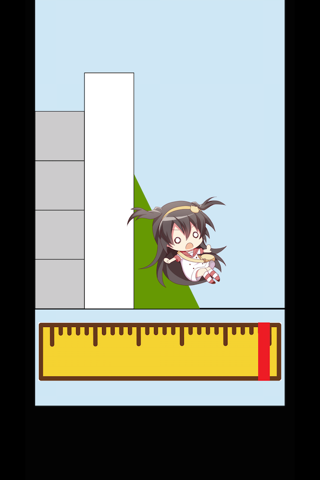 シンプルゲーム▽を赤いバーに合わせて、タイミングよく画面をタップ!何メートル飛べるかな?
