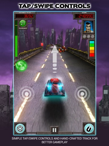 Test your reflexes as you tap and swipe between lanes, along a futuristic wasteland highway, at breakneck speed. Collect power cells for your epic escape as you avoid a host of deadly obstacles.