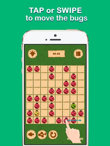 - Swipe or tap to select the beetles to move 1 or 2 tiles (depending on its type) vertically or horizontally.