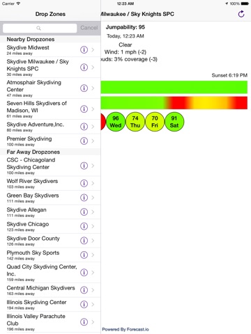 A weather app for skydiving. Get the relevant information and a handy score of weather or not it is jumpable for your drop zone.