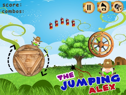 Meet "Jumping Alex", a gun-toting cowboy who is determined to cross through the maze of spinning wheels. Along the way he must shoot coins and chests, ride rockets, and be fired from a pistol. Your goal is to help our friendly cowboy reach new heights in this action packed game!