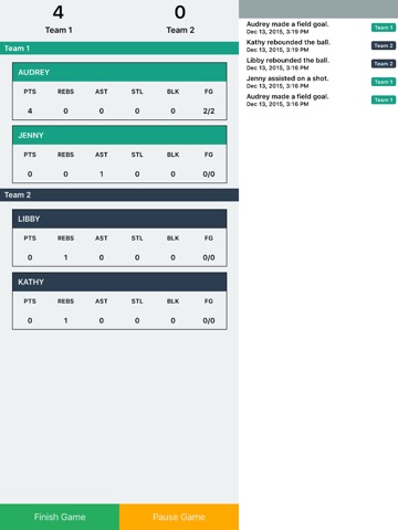The big colorful Game Pad makes stat tracking easy. You can keep track of the overall team score, see who is doing well on the court, and keep tabs on who is doing what with the Game Event Feed.