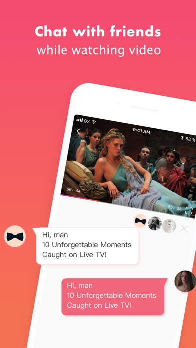 Invite friends: You can choose to invite your Facebook friends or contact book friends, send them messages,and invite them to watch videos with you.