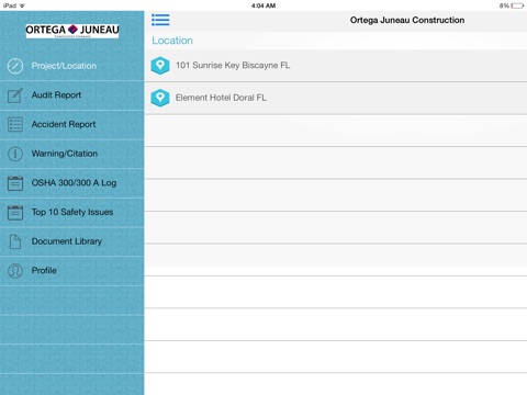 The Juneau Ortega Safety APP will allow you to use your iPad, iPhone Device to: Conduct Accident investigations – Complete your accidents forms while at the job site and upload relevant photos supporting your findings. By automatically downloading this to your proprietary server your OSHA logs will be generated for you instantly. You can also trend your accident data to focus on problem areas within your organization, or generate reports for senior management.