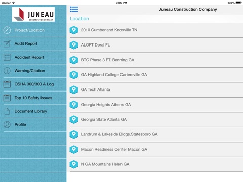 The Juneau Safety APP will allow you to use your iPad, iPhone Device to: Conduct Accident investigations – Complete your accidents forms while at the job site and upload relevant photos supporting your findings. By automatically downloading this to your proprietary server your OSHA logs will be generated for you instantly. You can also trend your accident data to focus on problem areas within your organization, or generate reports for senior management.