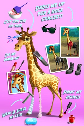 Giraffe Rachel wants animal spa treatments! Cut, dye and wash her hair. Create a style for her tail! Paint Rachel’s nails red and surprise her with super bright makeup. Mix and match clothes and accessories and style a new bold look for Rachel!