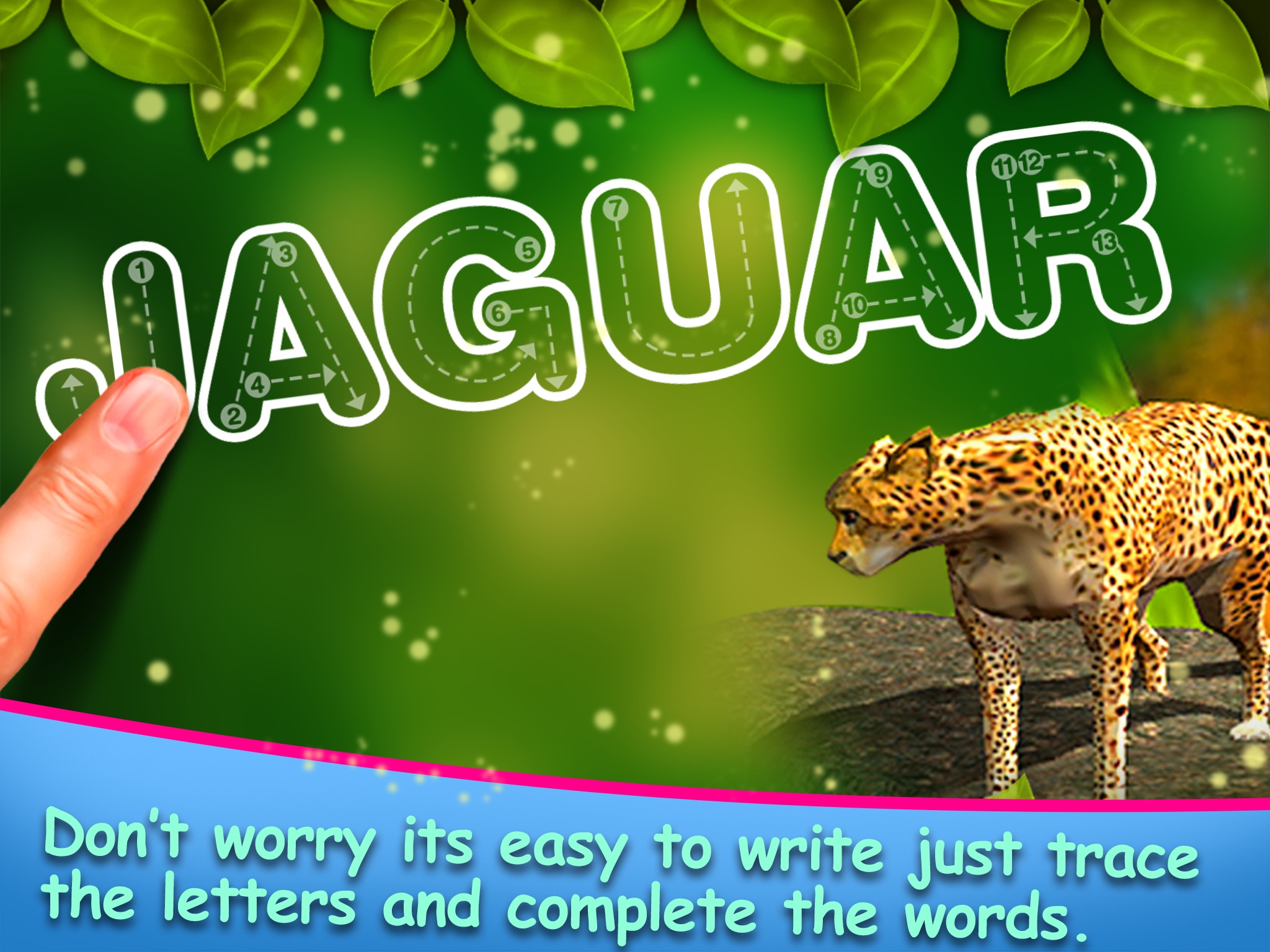 * Tap & learn - spelling and pronunciation of all types of jungle animals & wildlife.
