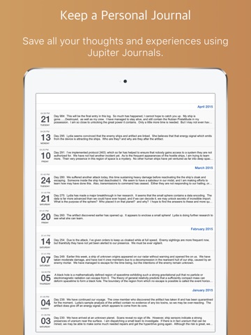 If you are looking for a powerful yet simple solution to keeping a personal diary, Jupiter Journals is for you! The app provides a clean and elegant way to let you jot down personal thoughts or take notes without complication or bloat. Weve kept Jupiter Journals fast and minimal while focusing on the following features: