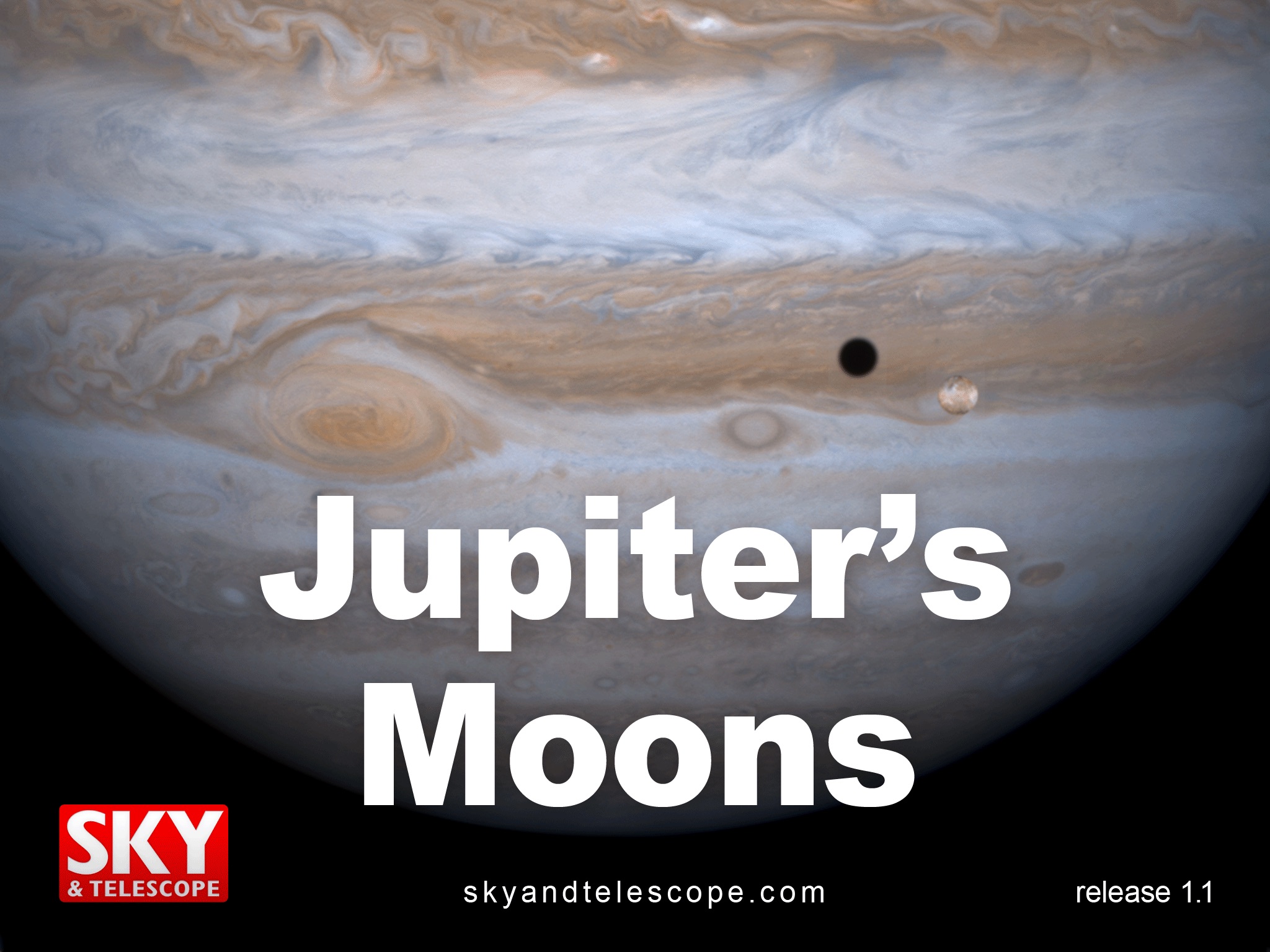Please note: this application is designed to work in landscape orientation only so that you may view Jupiter, the Great Red Spot, and the Galilean satellites at their best.