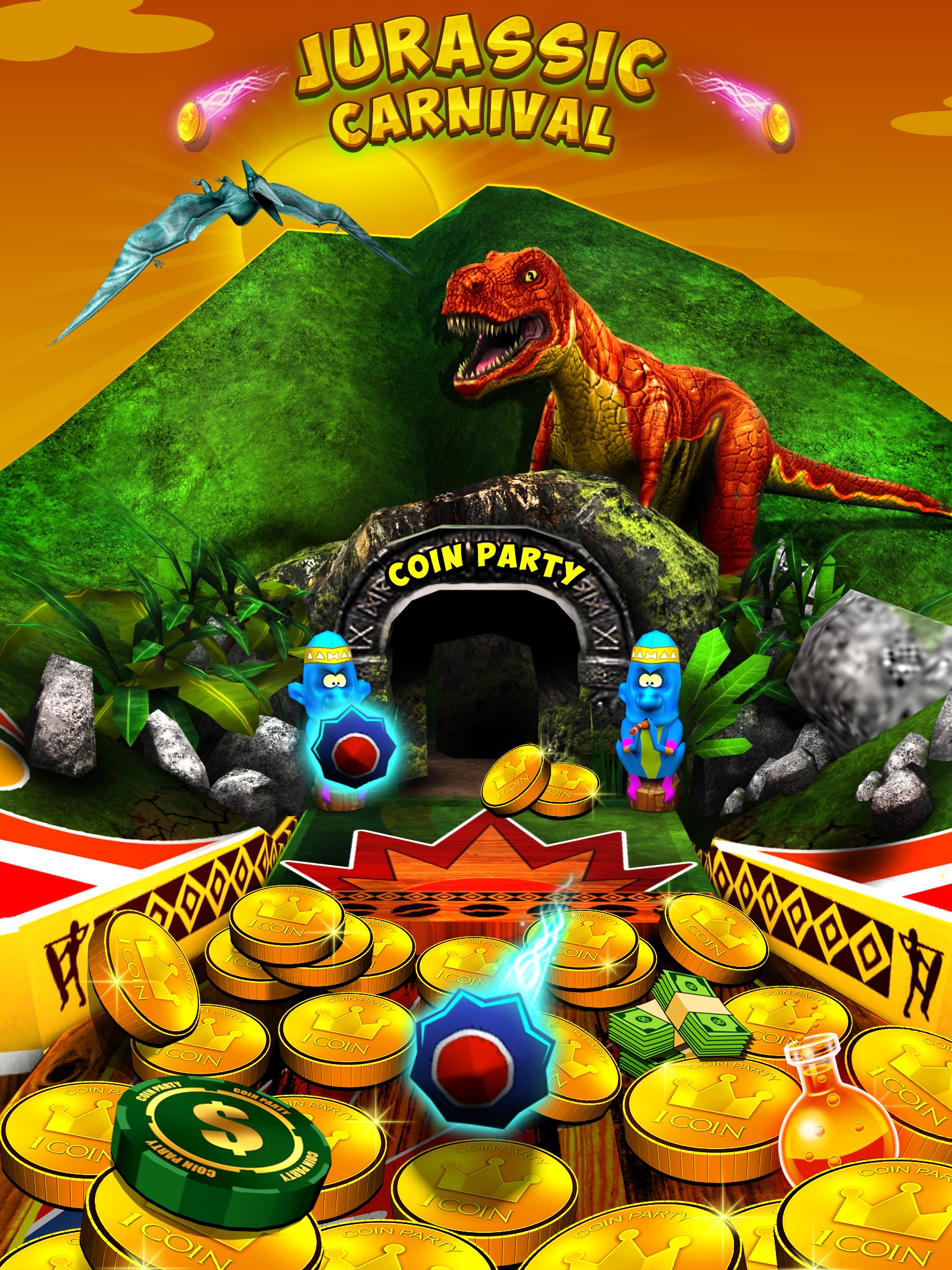 Collect dinosaurs, complete sets, and win prizes, Are you ready to venture into the wild for an amazing 3D jurassic dozer experience? Can you collect the T-Rex set? Coin Party is here with a new fun-filled jungle story for all you coin pusher addicts! With an exciting family adventure waiting for you, Jurassic Carnival puts hours of fun into your hands.
