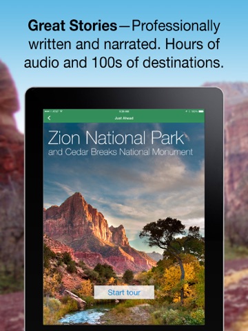 Each guide is written by an expert author and spoken by a professional narrator. You simply drive, while Just Ahead informs and entertains you.