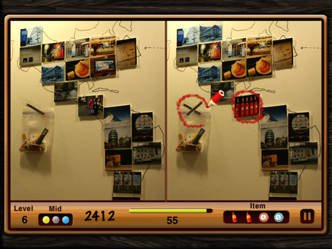 Everyone in your family can find it! You are presented two images almost identical but at most 4 different spots. If you find all the differences in each stage before the countdown timer runs out, the remained time will be added to your score. Be careful! Wrong spot means time penalty! But you will be relieved to know that some unused item is left!