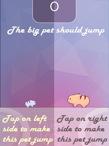 Just Look, The big pet must jump higher than the small one. Please tap on the screen where the big one is running. Unless you will die once the big one touch you. Good luck!