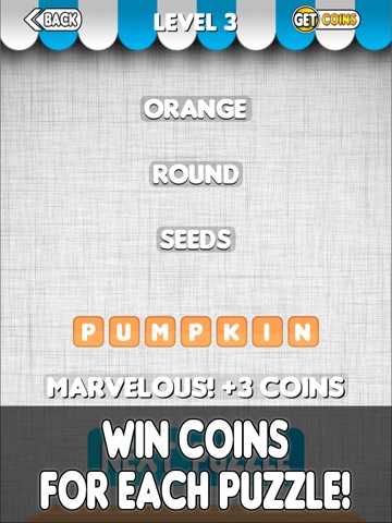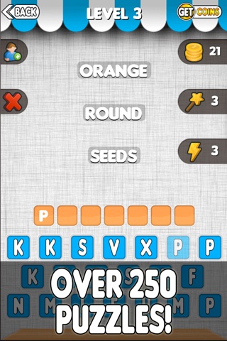 With over 250 word puzzles and more coming soon, you’ll be busy for hours. If you get stuck on a level, you can ask your friends on Facebook or Twitter. Or, you can use one of the in-game features to reveal a letter or remove one.