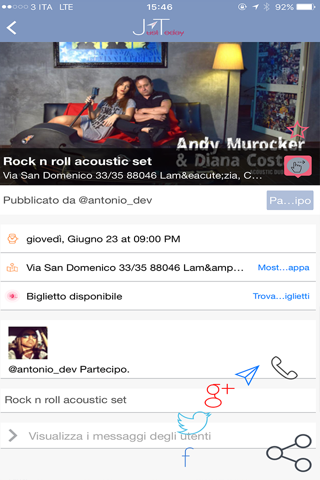 • Prenota un tavolo di un locale che da l’ eventi tramite il telefono