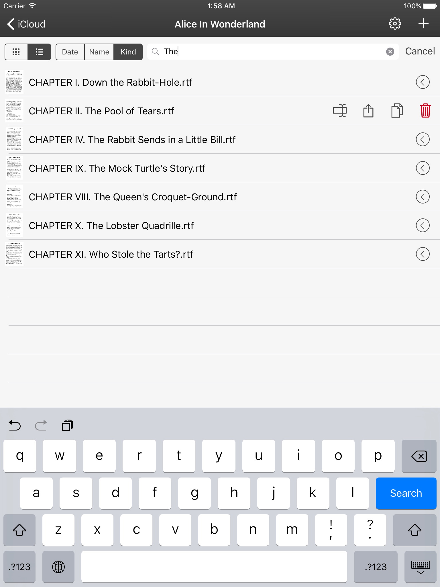 Just Write has iCloud support (opt-in) so you can sync your rtf and txt files across all your devices.