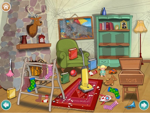 Then step inside the cottage to help clean and tidy all of the rooms. You are going to be very busy mopping and dusting and sorting and matching and counting and….phew! There’s so much to do, but don’t worry, Justin is there to help.