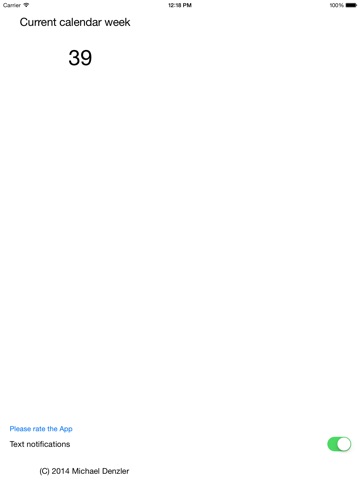 Did you ever want to know simple and straightforward manner which week it is now? With just the week is finally possible. It was not overloaded with unnecessary and complicated settings so the app can just do what it was created for. Viewing the current calendar week. The calendar week is shown in the App, as well as visible notification in the app icon. At the start of a new week it is automatically updated without having you to start the app. To do not allocate the resources of your device unnecessary, there are just automatic updates for the next 10 weeks scheduled in the system. An update is made with a short message regarding the current calendar week. This message can be switched off.