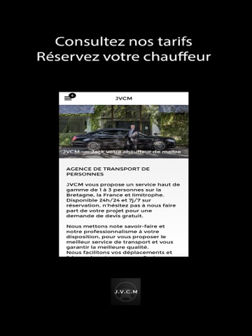 Derrière le sigle JVCM se cache en réalité, Jack, votre chauffeur de maître. Cette entreprise haut de gamme spécialisée dans le transport sera soucieuse de vous offrir une prestation sur mesure adaptée à vos besoins. Organiser de façon optimale vos déplacements sur toute la France 24h/24 et 7j/7 sur réservation.