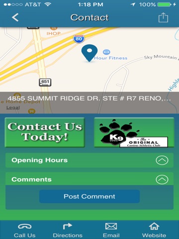 - CONTACT allow app users to contact business via: Call Us, Directions, Email, and Website